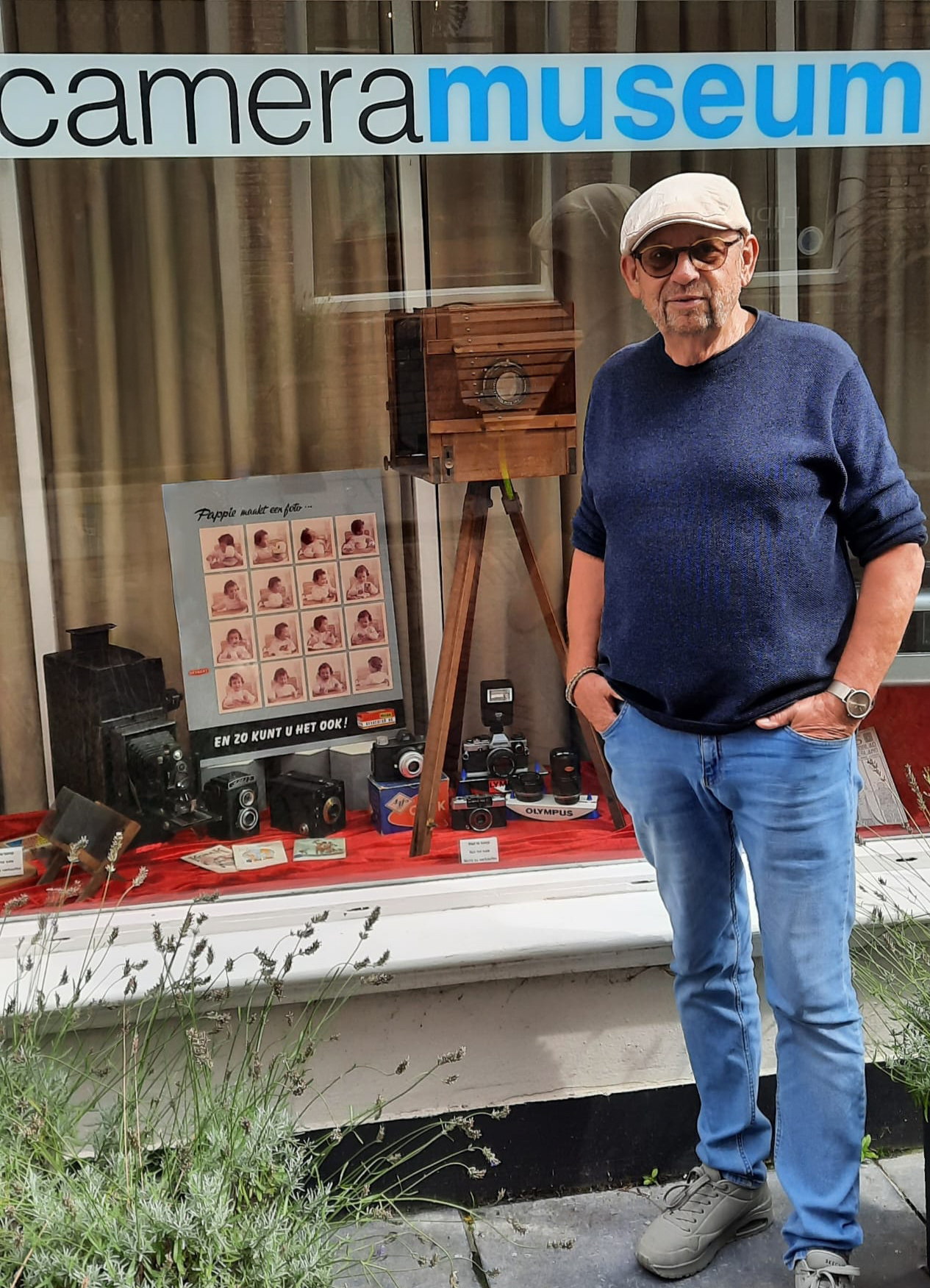 Mijn naam is Fred Kramer, ik ben in 1953 in Apeldoorn geboren en woon sinds 2018 met mijn vrouw Dea in het mooie Zutphen. Daarvoor woonden we in Assen en daar veranderden we rond 2012 onze woonstijl van modern naar brocante. In de hierop volgende zoektocht naar brocante accessoires vond ik ook mijn eerste boxcamera. Het was de opmaat voor het kopen van meer camera’s en vanaf 2014 begon ik ze bewust te verzamelen.