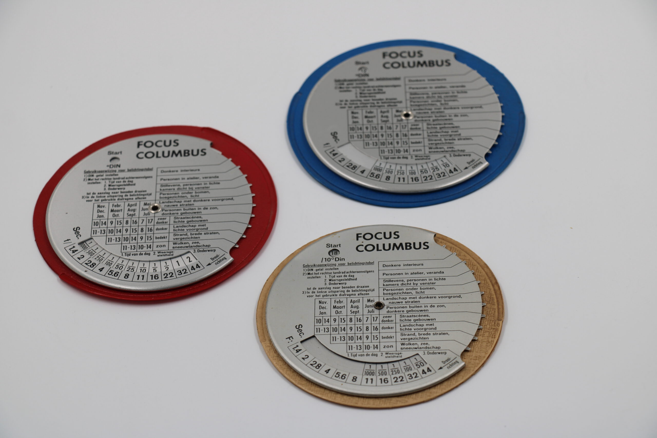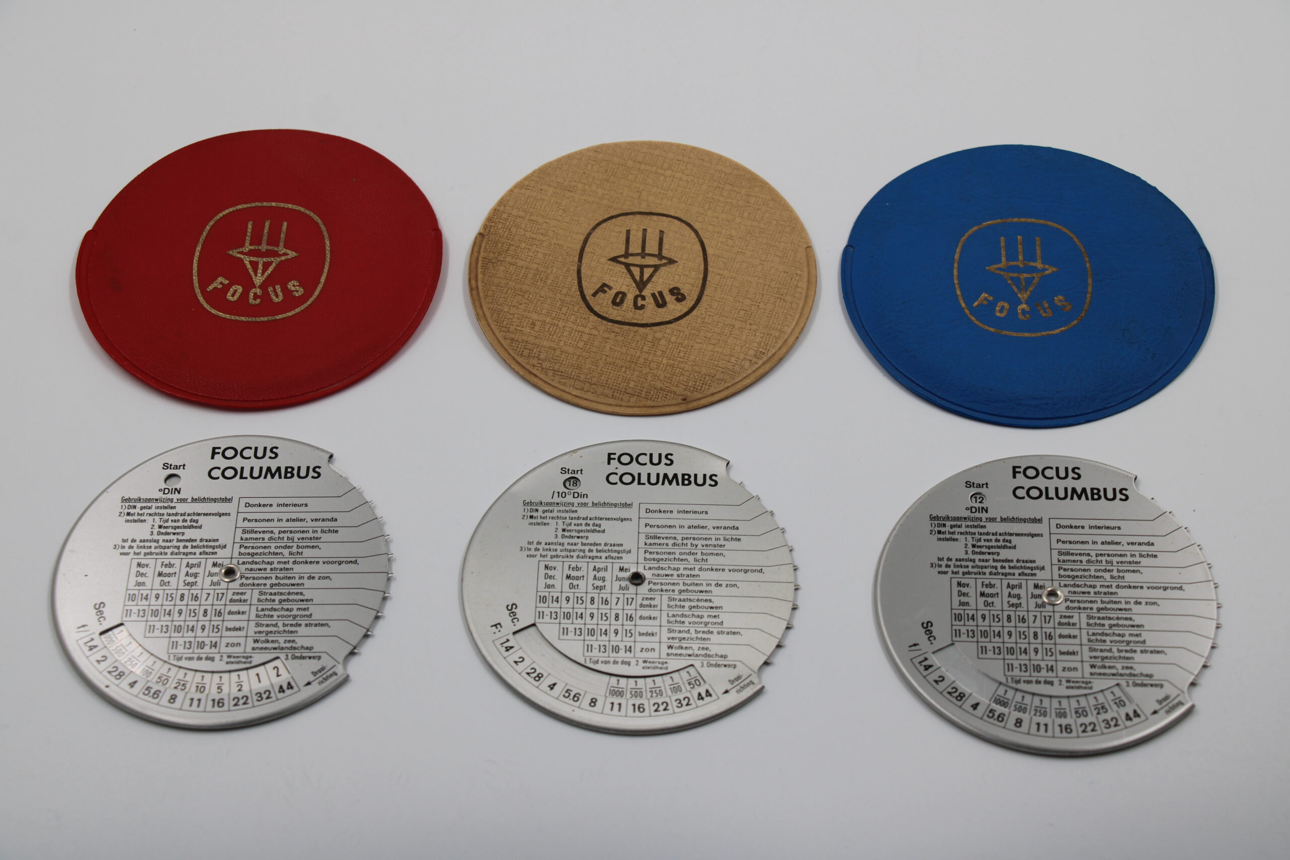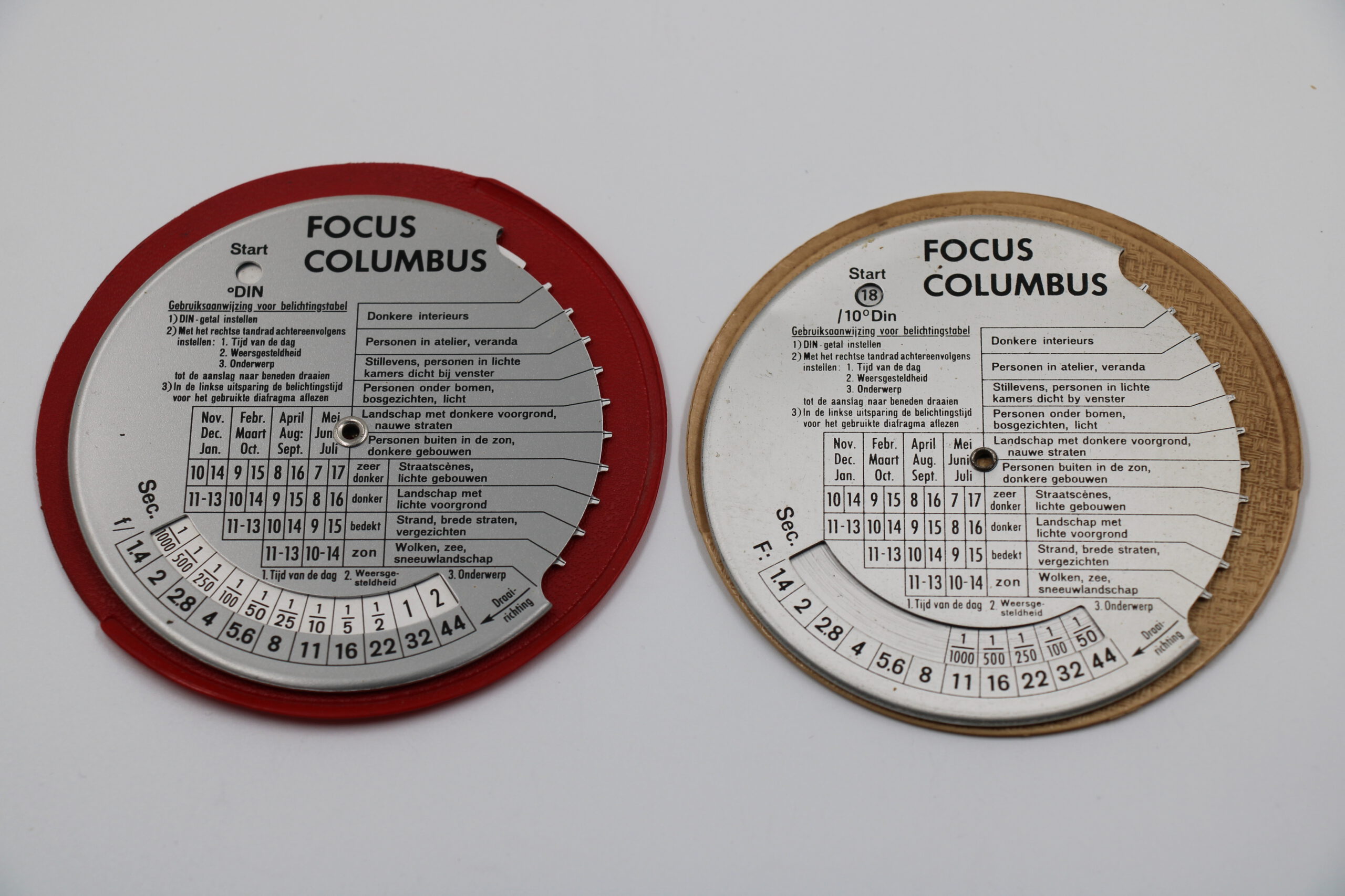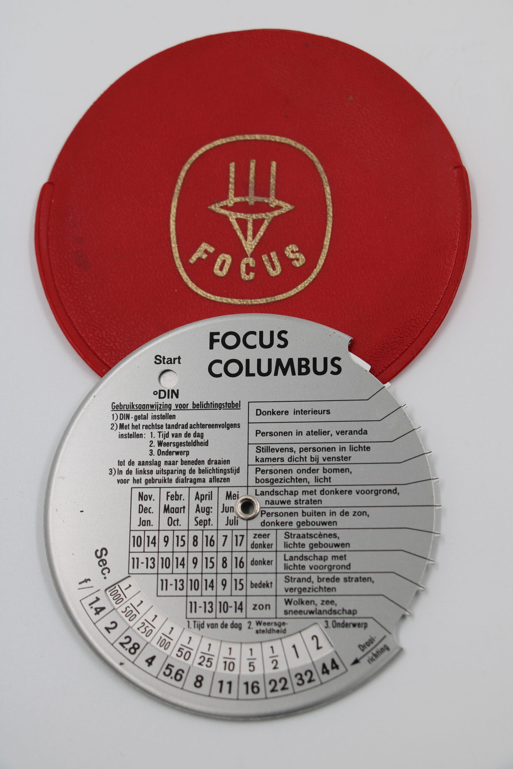 Deze door ‘Focus’ uitgegeven Columbusschijven werden in de vijftiger en zestiger jaren van de vorige eeuw gebruikt. Ze zijn afgeleid van de AGFA-belichtingsschijven en mogelijk zijn ze zelfs door AGFA gefabriceerd. De drie belichtingsmeters zelf zijn vrijwel identiek, alleen de beschermhoezen verschillen van kleur.