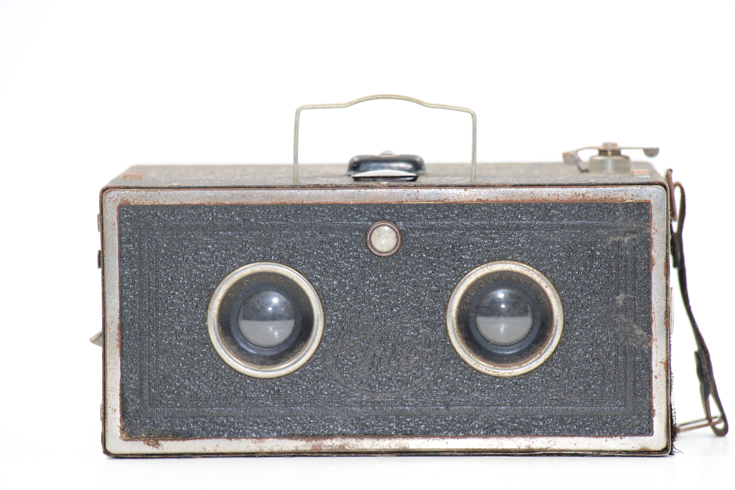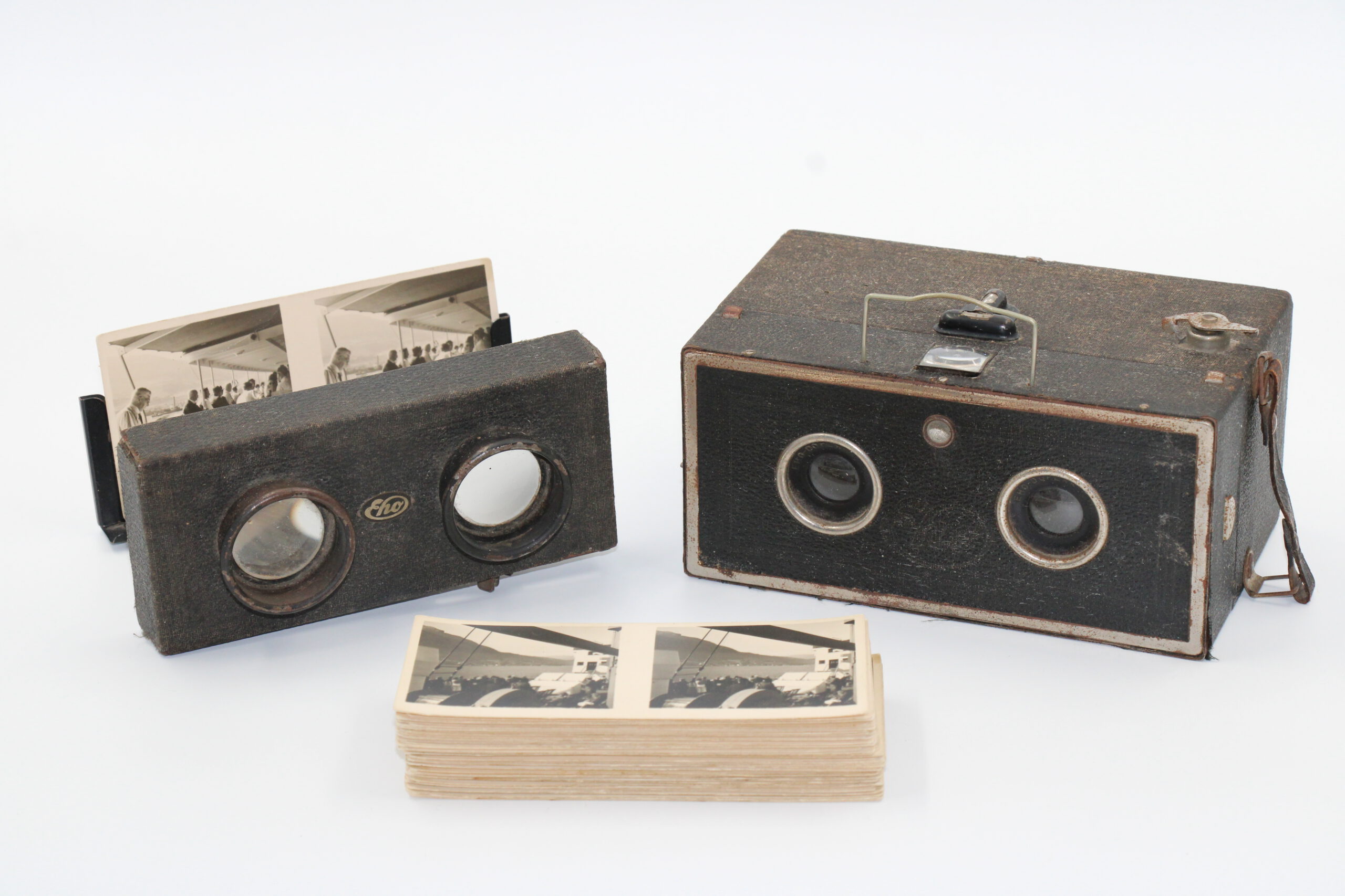 Ik heb uit deze periode in mijn verzameling een EHO boxcamera uit 1929, een boxcamera uit 1932 en een stereocamera eveneens uit 1932. Volgens de MCKeown’s Price Guide van 1997-1998 kon je met de stereocamera 5 stereo-opnamen van 6×13 cm maken of 10 enkele foto’s van 6×6 cm op een 120 rolfilm. Bij de stereocamera hoort tevens een EHO stereoscoop. In de periode dat ik fotografica verzamel, heb ik nog niet eerder gezien dat deze combinatie samen te koop werd aangeboden.