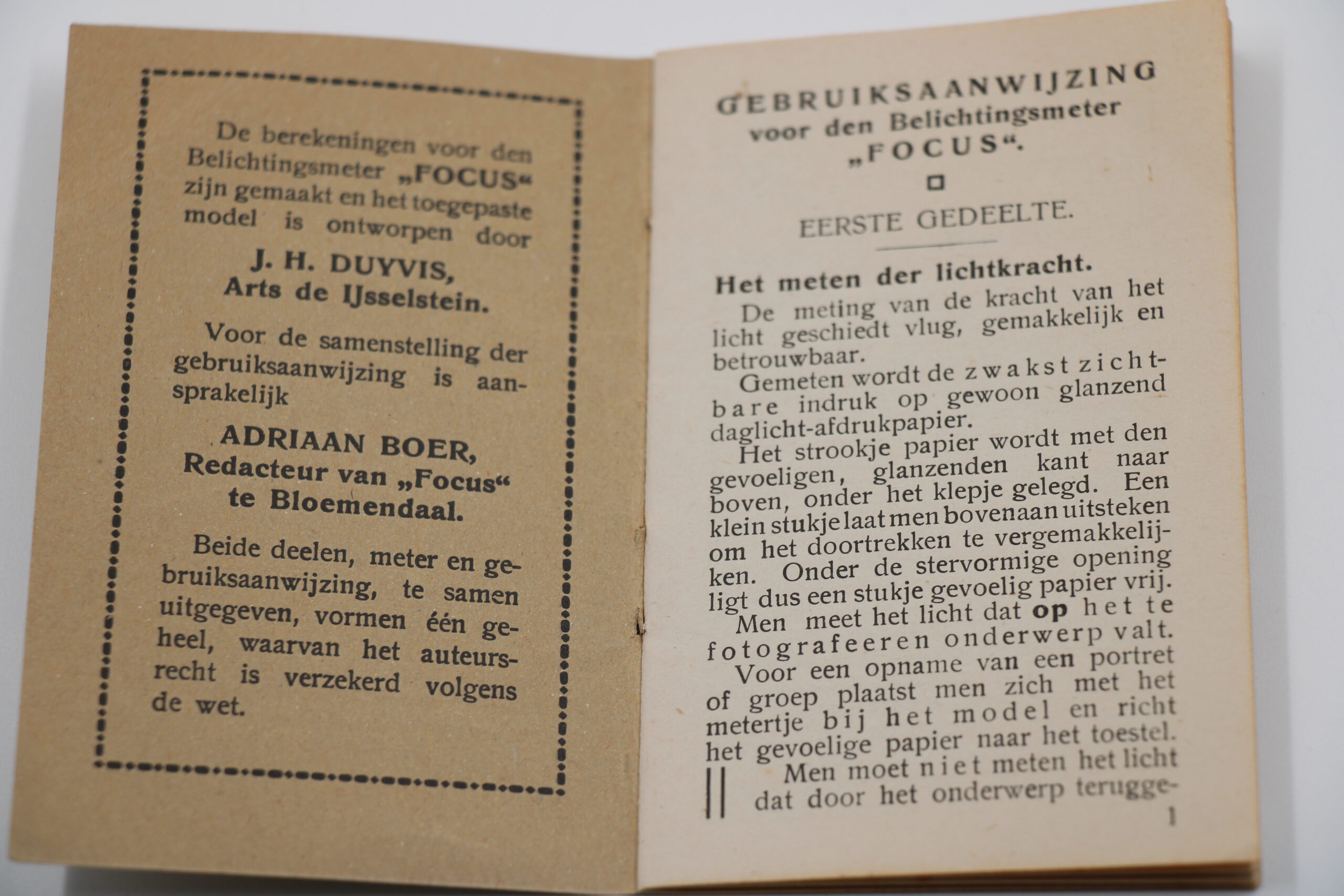 Deze belichtingsmeter bestaat uit een boekje waarin de gebruiksaanwijzing voor toepassing van de meter is opgenomen. Het boekje stamt ongeveer uit 1925.