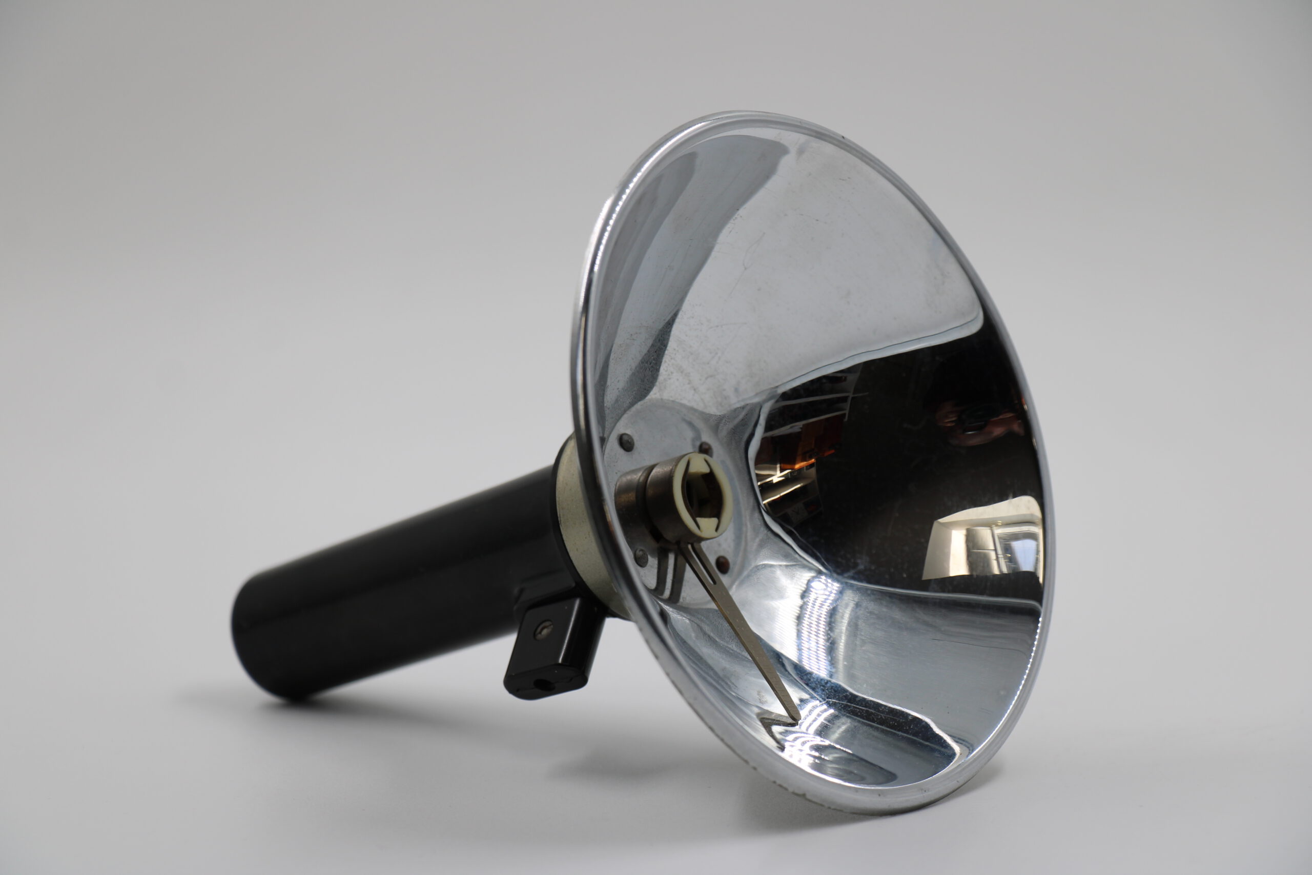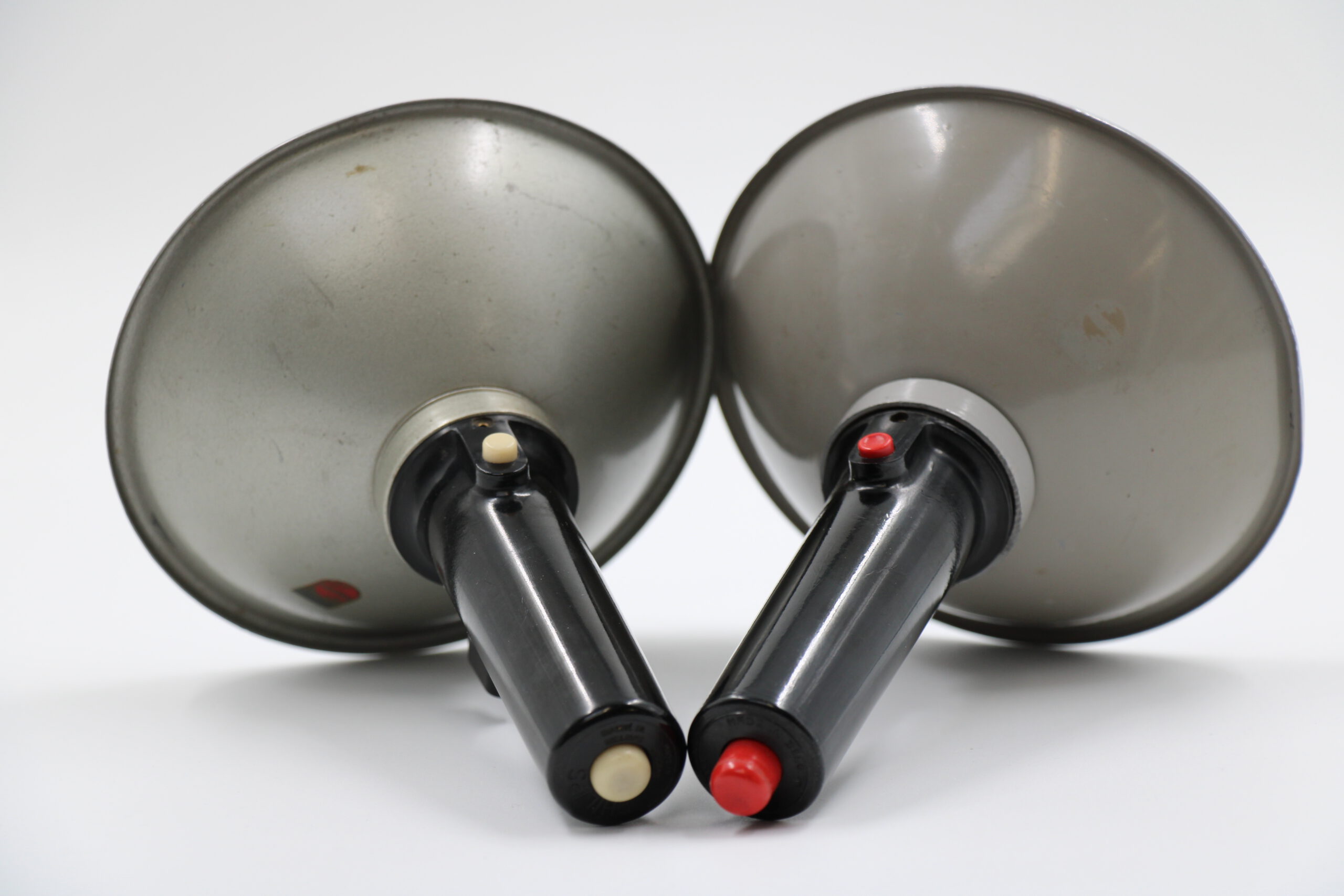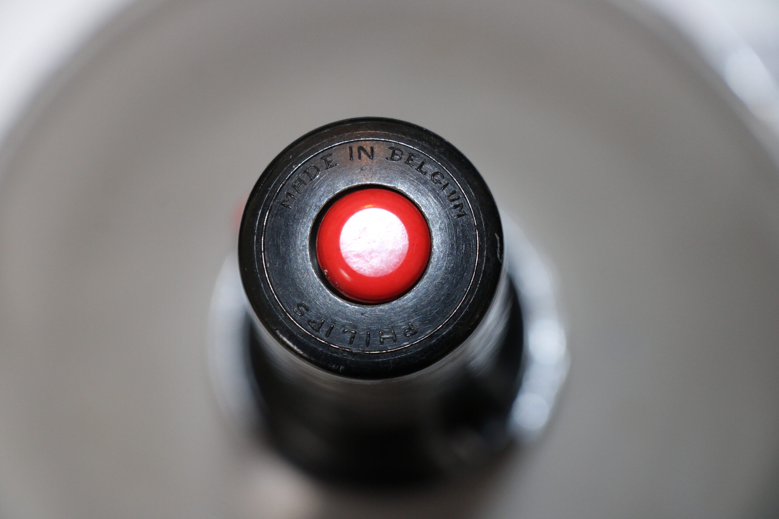 Toen ik ze wat nauwkeuriger bekeek, zag ik dat op de achterzijde van het bakelieten handvat nog een interessant verschil zichtbaar is. Op mijn flitser met de rode knoppen staat: ‘Made in Belgium’, terwijl op mijn flitser met de witte knoppen ‘Made in Holland’ staat.